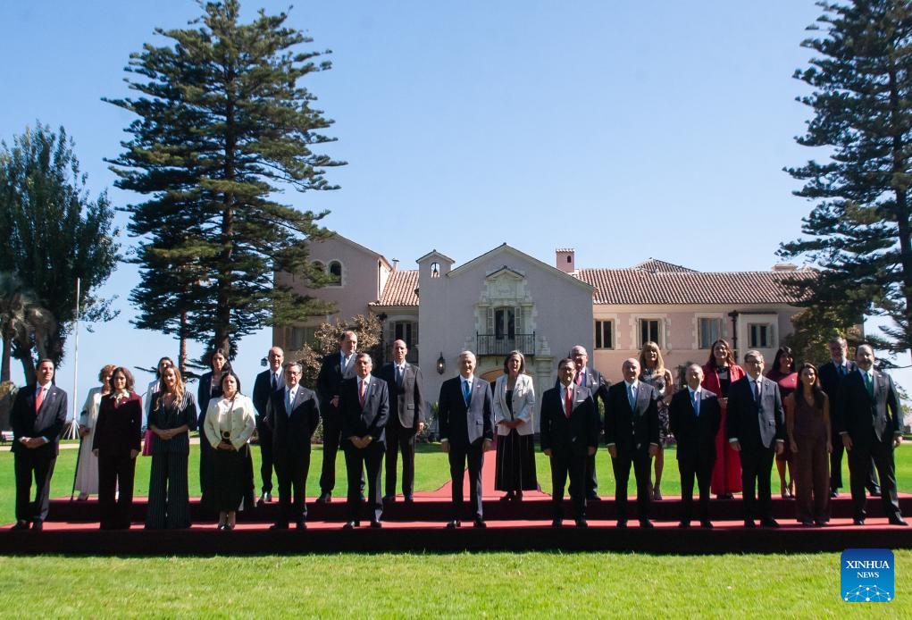 Chile's new president Jose Antonio Kast (C) poses for a group photo with his cabinet members ahead of his inauguration ceremony in Valparaiso, Chile, March 11, 2026. Kast took office on Wednesday as Chile's new president for the 2026-2030 term, succeeding Gabriel Boric. (Agencia UNO/Handout via Xinhua)