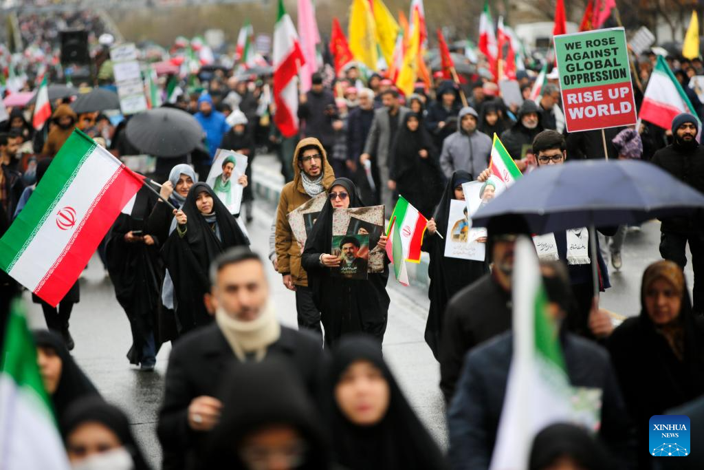 People across Iran on Friday took to the streets to mark International Quds Day, an annual event expressing support for Palestinians and condemnation of Israeli actions. (Xinhua)