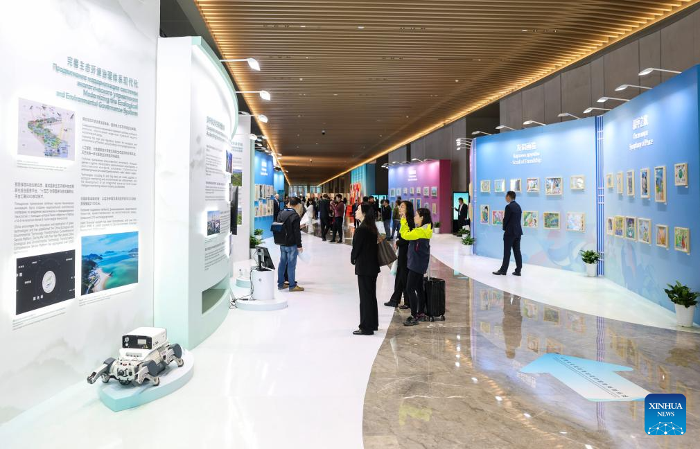 People visit an exhibition during the Green and Sustainable Development Forum of the Shanghai Cooperation Organization (SCO) in Ningbo, east China's Zhejiang Province on April 29, 2026. Opened on Wednesday in Ningbo, the forum is co-hosted by the SCO Good-Neighborliness, Friendship and Cooperation Commission, the Ministry of Ecology and Environment, and the People's Government of Zhejiang Province. (Xinhua/Jiang Han)