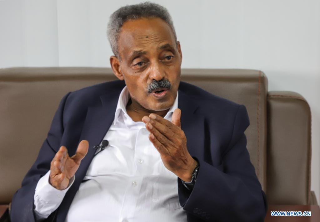 Fantahun Hailemichael, coordinator of the Africa Centers for Disease Control and Prevention (Africa CDC) headquarters project at the African Union, speaks during an interview with Xinhua in Addis Ababa, Ethiopia, June 2, 2021. Construction work on the China-aided future headquarters of the Africa CDC is running "very smoothly with full force," a long-serving African Union expert has said. (Xinhua/Michael Tewelde)