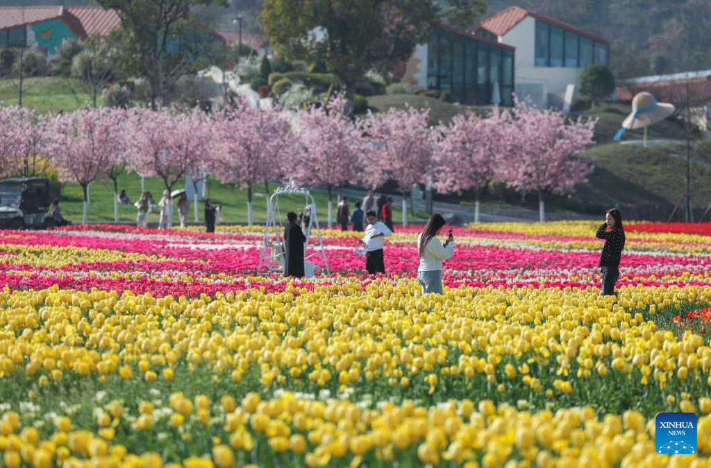 Tourists view tulips at a scenic area in Jinhua City, east China's Zhejiang Province, March 10, 2026. (Xinhua/Xu Yu)