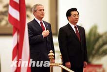 President Hu hosts welcome ceremony for Bush