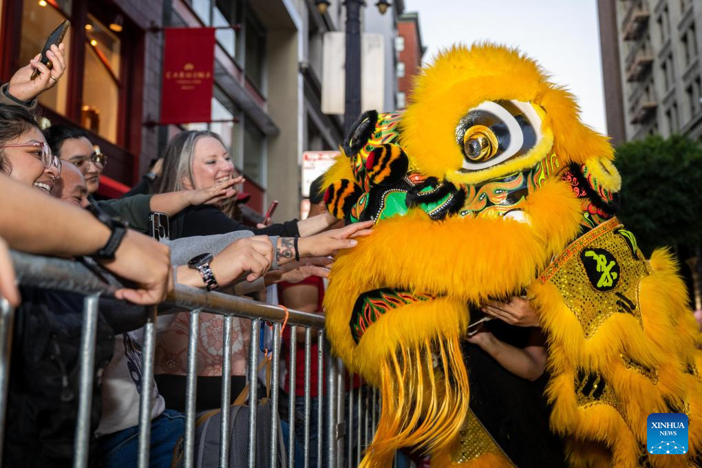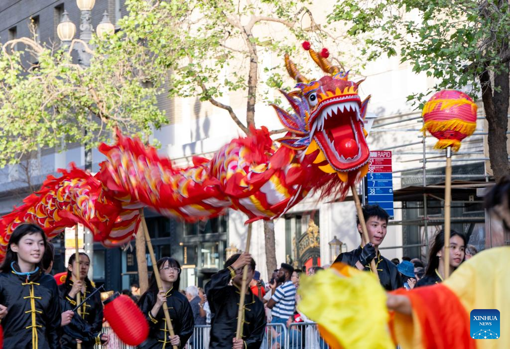 People attend a float parade celebrating the Chinese Lunar New Year in San Francisco, the United States, March 7, 2026. (Photo by Dong Xudong/Xinhua)