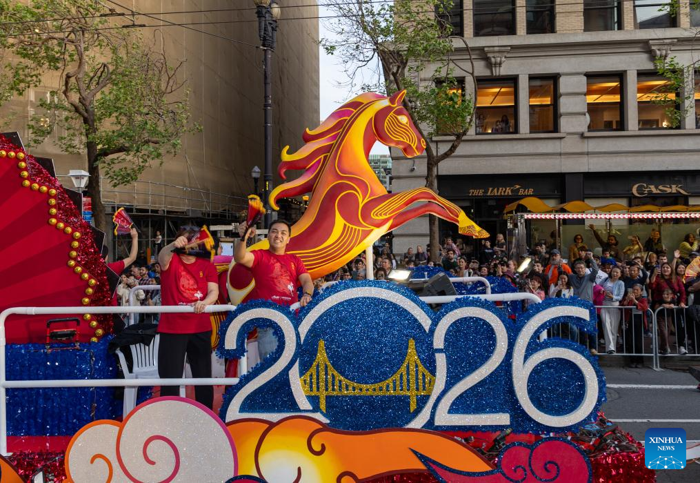 People attend a float parade celebrating the Chinese Lunar New Year in San Francisco, the United States, March 7, 2026. (Photo by Ziyu Julian Zhu/Xinhua)