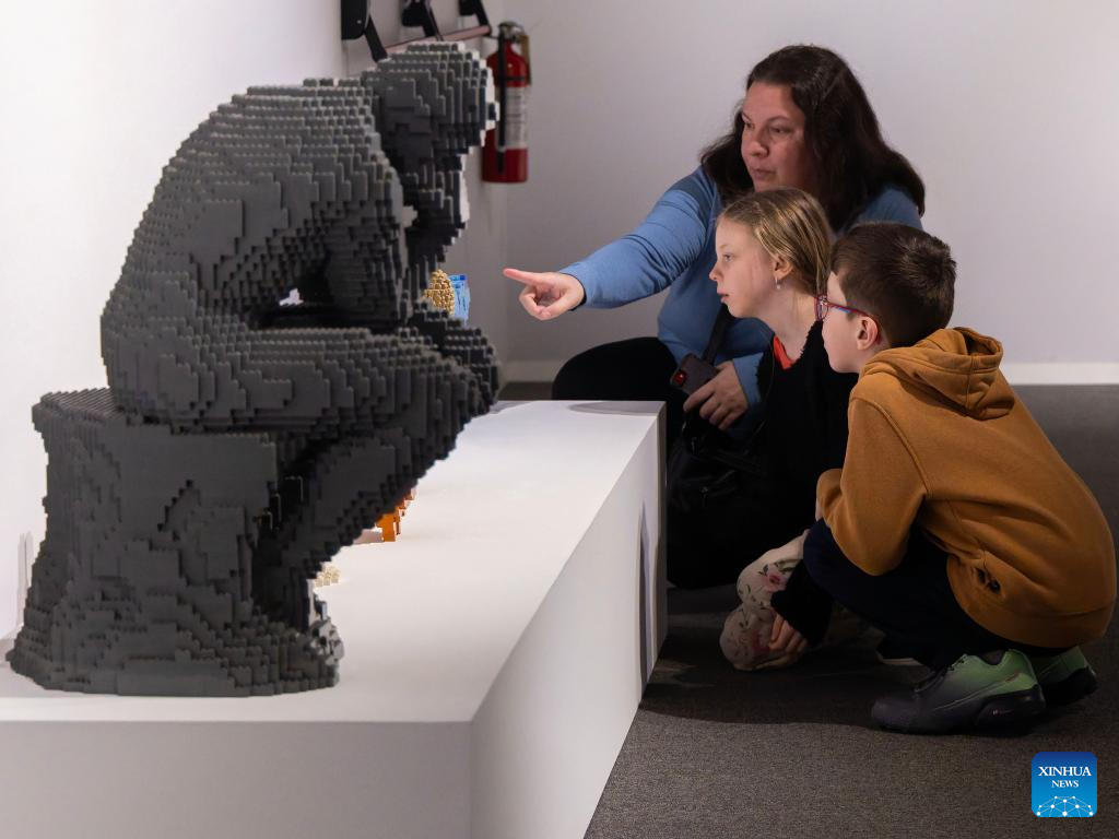 People view artworks during the exhibition Art of the Brick in Toronto, Canada, on March 12, 2026. Showcasing over 130 artworks and constructions made out of more than one million LEGO bricks, this art exhibition is held here from March 5 to May 31. (Photo by Zou Zheng/Xinhua)