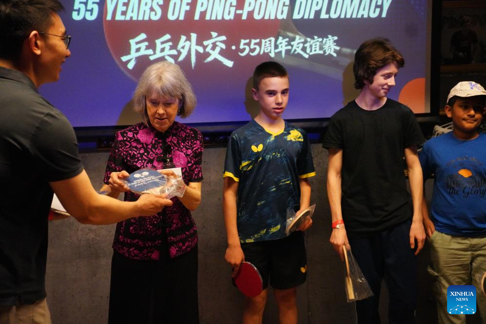 NEW YORK, April 18 (Xinhua) -- Chinese and U.S. table tennis athletes, university representatives and local enthusiasts gathered here on Friday to mark the 55th anniversary of "Ping-Pong Diplomacy," celebrating the enduring friendship fostered through sports exchanges.