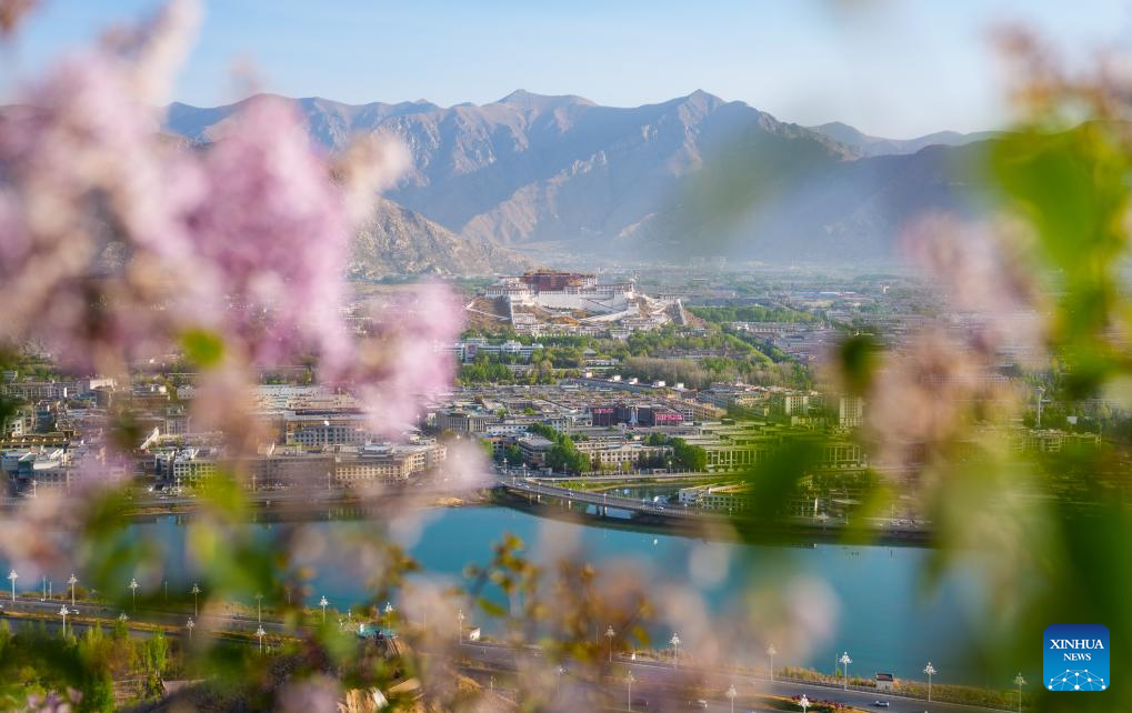 This photo taken on April 26, 2026 shows the Potala Palace seen from the Nanshan park in Lhasa, southwest China's Xizang Autonomous Region. (Xinhua/Tenzin Nyida)