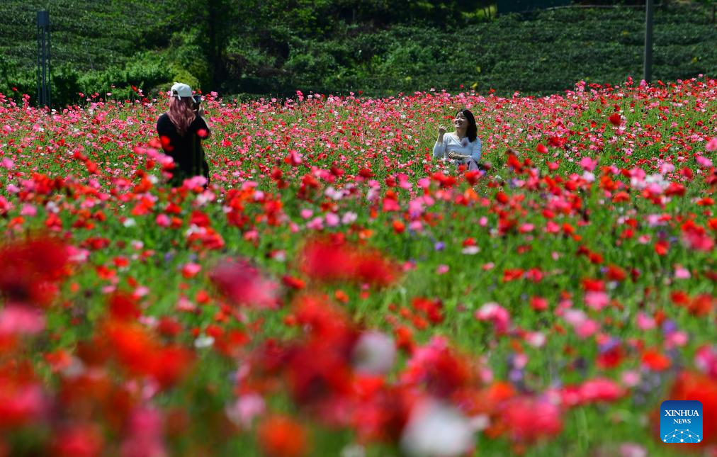 A tourist takes photos of flowers at the Qingxiu Mountain scenic area in Nanning, south China's Guangxi Zhuang Autonomous Region, April 25, 2026. (Photo by He Huawen/Xinhua)