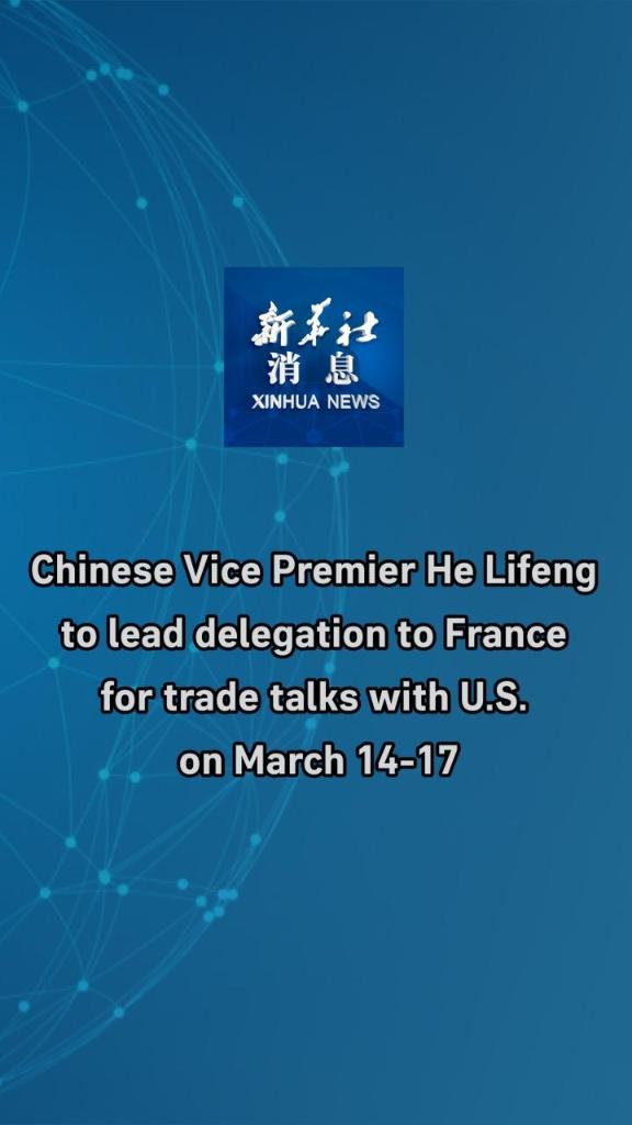 Xinhua News | Chinese Vice Premier He Lifeng to lead delegation to France for trade talks with U.S. on March 14-17