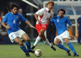 Pablo Mastroeni (R) Fights for Ball while Rui Costa Tries to Stop Him (