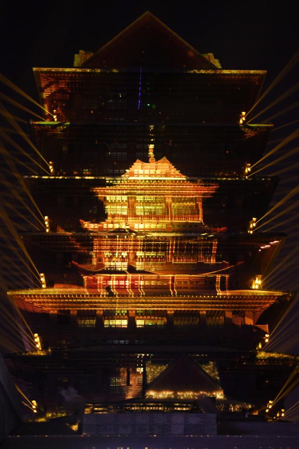 蘭州黃河樓元旦期間上演光影秀