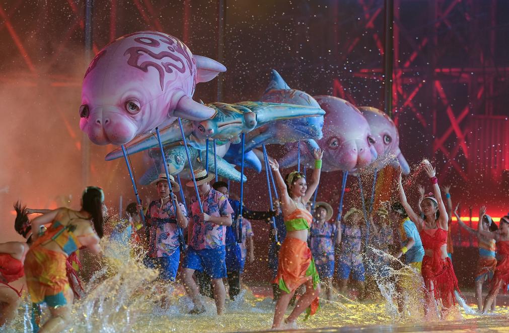 用开闭幕式总撰稿乔卫的话来说,这是“天海无垠,天涯咫尺”。“在天光、海面之间,我们不再是被动的‘观看者’,而是自然的‘融入者’。”他说,这象征着各个国家和地区的人们因沙滩、阳光、大海而相聚,表达了命运与共、携手同行的愿景。