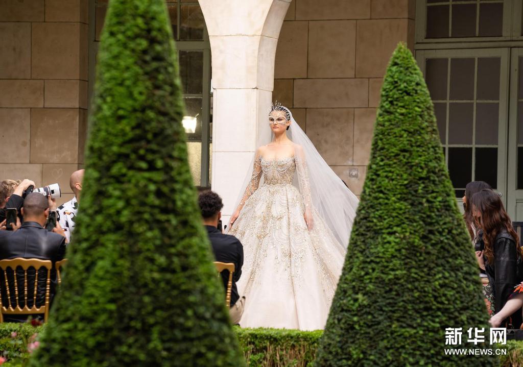 7月7日,模特在法國巴黎高級(jí)定制時(shí)裝周上展示Zuhair Murad品牌2021/2022秋冬新品。