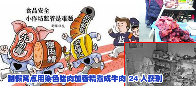 制假窩點用染色豬肉加香精煮成牛肉 24人獲刑