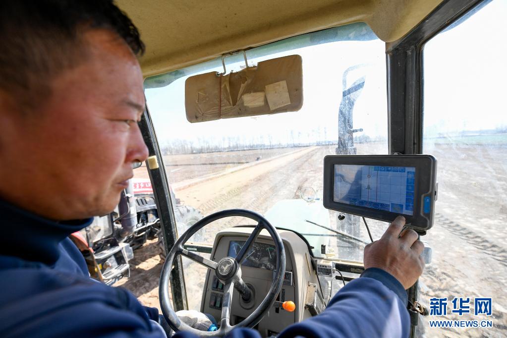 在位于寧夏吳忠市利通區(qū)金積鎮(zhèn)塔灣村的智慧農(nóng)業(yè)科技示范區(qū),農(nóng)機手在播種前調(diào)試自動駕駛拖拉機(2020年4月9日攝)。近年來,寧夏吳忠市利通區(qū)大力發(fā)展智慧農(nóng)業(yè),通過引進北斗導航系統(tǒng)、智能環(huán)境與土壤監(jiān)測系統(tǒng)、植保無人機等智能化農(nóng)業(yè)技術(shù)和設(shè)備,幫助農(nóng)民在提高耕作、播種效率與質(zhì)量的同時,降低生產(chǎn)成本。