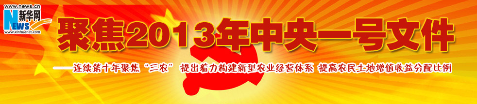 2013年中央一號文件要求,舉全黨全國之力持之以恒強化農業(yè)、惠及農村、富裕農民。 [詳細]