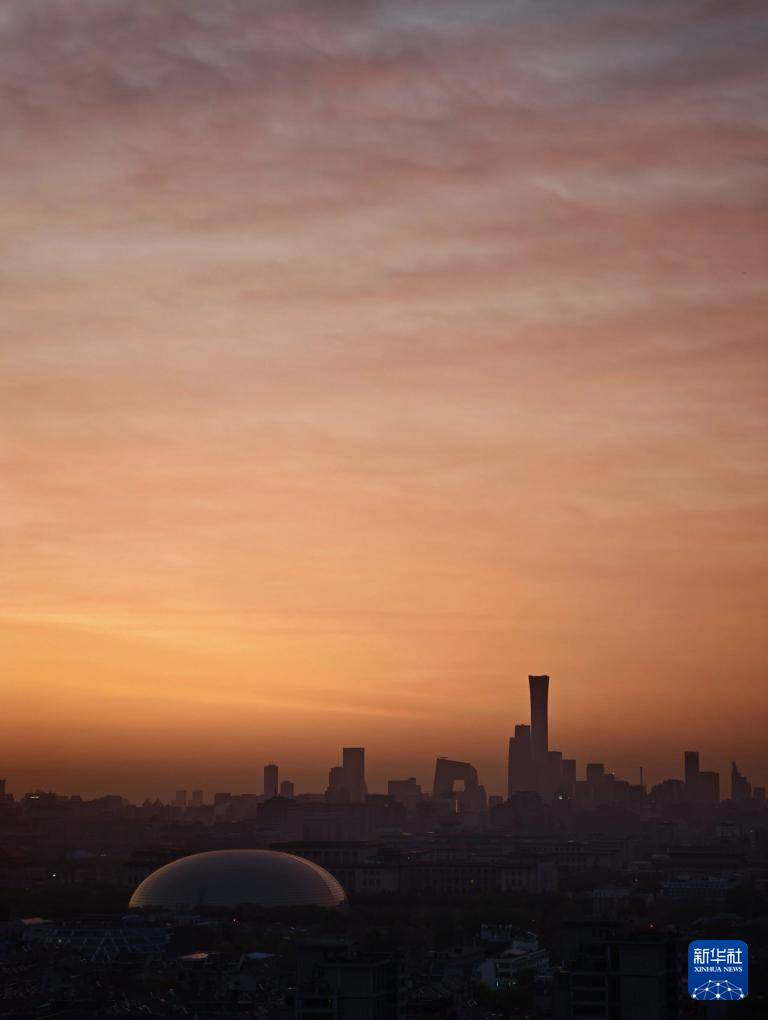 4月21日在北京德胜门附近拍摄的朝霞。