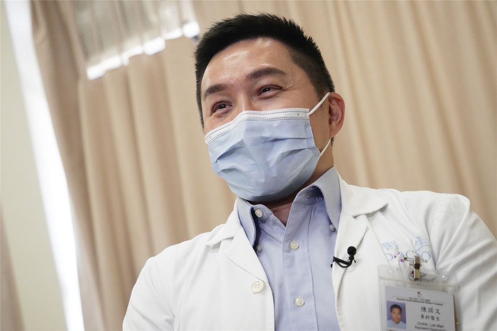 在香港東區(qū)醫(yī)院,“氣球大夫”陳諾文醫(yī)生接受新華社記者專訪。(新華社記者 王申 攝)
