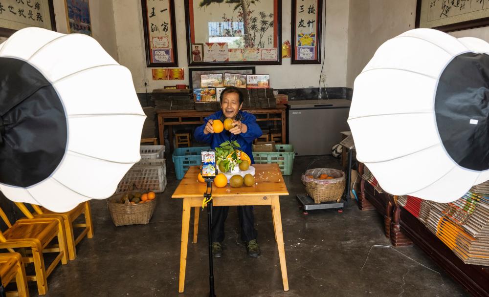 湖北秭歸:七旬果農(nóng)直播帶橙出三峽