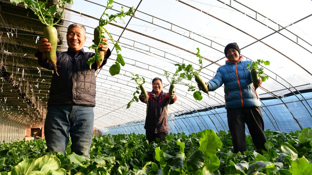2024年12月,天津市西青区辛口镇的沙窝萝卜种植户们喜获丰收。新华社发