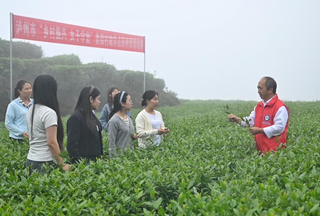 5月28日,在“乡村振兴 女子学堂”打古镇普照村教学点,农技专家在茶园现场教学。