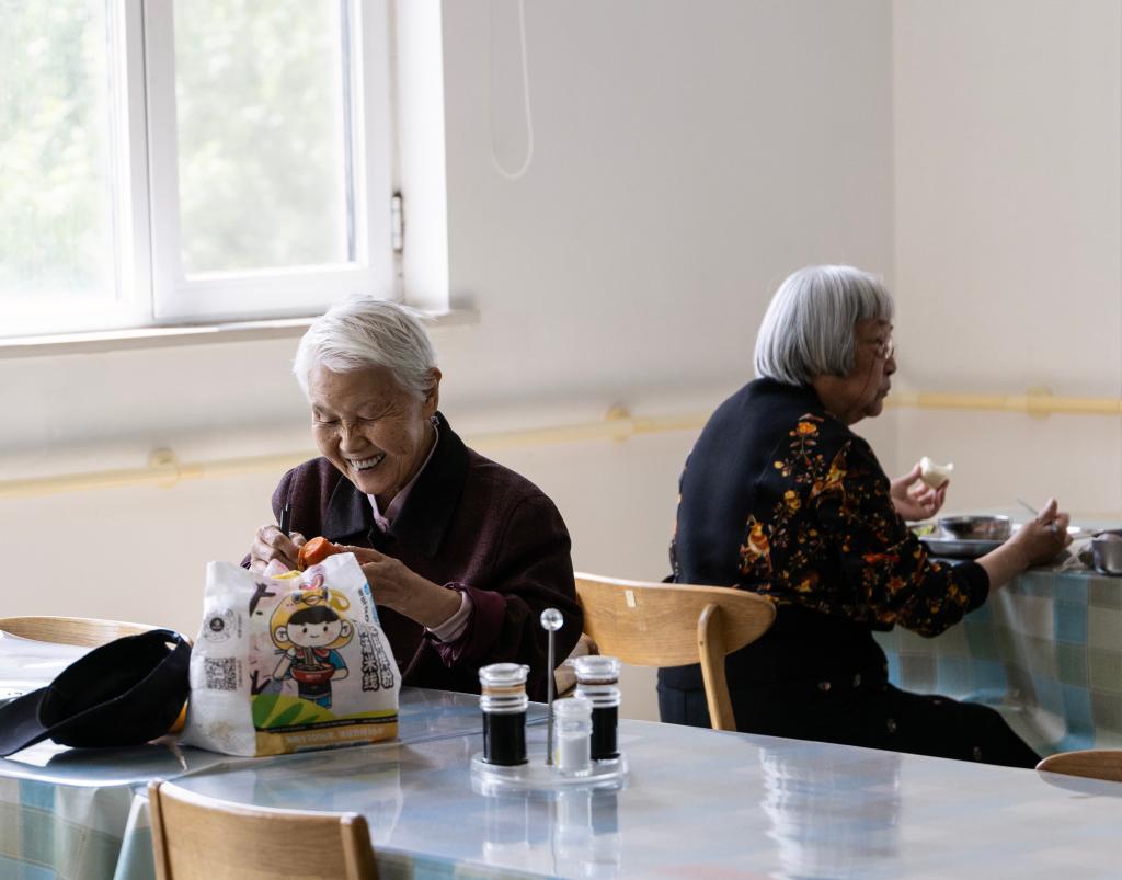 4月23日,老人在天津市滨海新区第一老年养护院就餐。