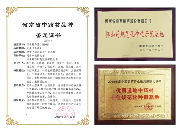 培育地黃“北京3號(hào)”新品種“太圣(新豐)”,2020年2月,獲得“中藥材品種鑒定證書”。