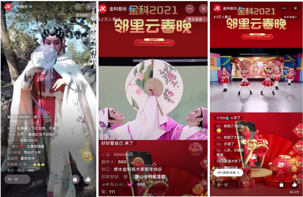 金科積極響應(yīng)政府號(hào)召,也深度洞察人們對(duì)團(tuán)圓的期盼,2月5日,集團(tuán)品牌統(tǒng)籌舉辦了“金科2021鄰里云春晚”。通過一場鄰里春晚直播,打破了疫情防控常態(tài)化下的空間壁壘,讓全國百萬業(yè)主實(shí)現(xiàn)線上團(tuán)圓。