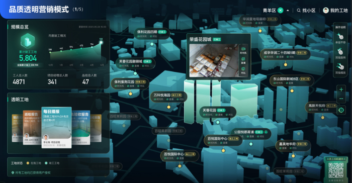 资金存管不仅是支付方式的改变,更与数字化工具深度绑定。消费者通过小程序即可完成开户、选择支付方式,并实时查看资金冻结与解冻进度、节点验收记录等全流程信息。在施工环节,贝壳自主研发的“贝刻云视”智慧工地系统,通过AI摄像头实时监控工地进度与安全规范,业主可在手机端随时查看施工现场直播、材料清单及验收报告。此外,在被窝及圣都的各大展厅内,均设有工地全景直播交互式大屏,直观展示工地的施工进度、现场情况以及整改问题的最新动态,将“透明装修”从理念落地为可感知的现实。