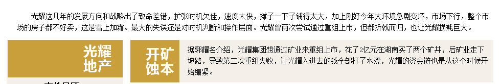 多家媒體報(bào)道稱(chēng)光耀地產(chǎn)資金鏈斷裂瀕臨倒閉 |