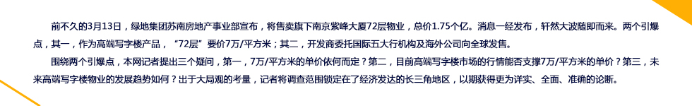 僅以蘇州為例,其甲級辦公寫字樓的平均售價(jià)已奔至“2字頭”;租金報(bào)價(jià)與南京同類物業(yè)的差距也已縮小至1.5元/平方米/天。 |