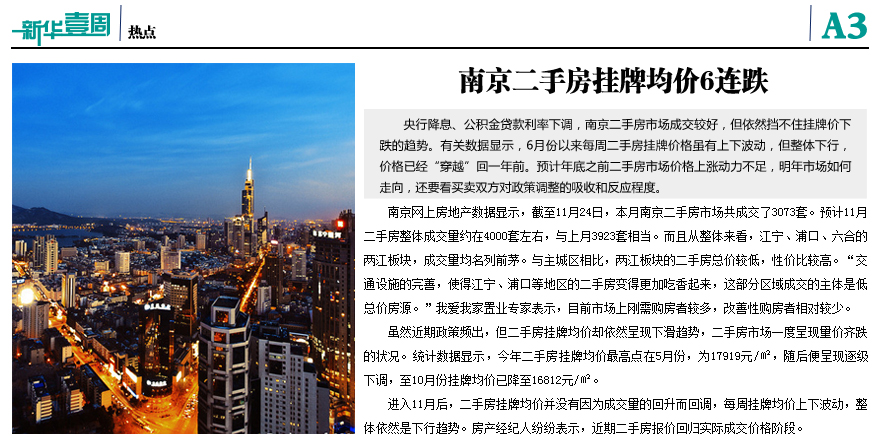 南京二手房掛牌均價(jià)6連跌