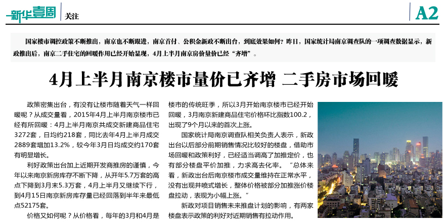 4月上半月南京樓市量價齊增