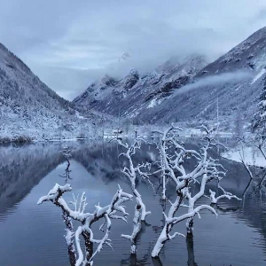 不同于深冬的凛冽,四姑娘山的春雪自带温柔滤镜,轻盈的雪花落在枝头,覆在高山草甸之上,映着澄澈蓝天,既有雪山的壮阔,又有春日的灵动。雾凇缀满琼枝,蓝冰映着雪峰,珠噶纳措的海子被白雪环绕,风过雪落,沙沙作响,仿佛在诉说着山川的浪漫私语。