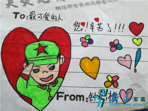 ????“官兵們很辛苦,早上6點(diǎn)就出門,直到深夜才回來(lái)休息。前天晚上,累了一天的官兵打著手電筒,幫助我們學(xué)校清理走廊的垃圾,扶正校園里被臺(tái)風(fēng)吹倒的樹木,讓學(xué)校師生非常感動(dòng)?!蔽寰壍诙?shí)驗(yàn)學(xué)校德育處負(fù)責(zé)人黃森說(shuō),小朋友們想用自己的方式表達(dá)對(duì)官兵的感謝,就自己動(dòng)手制作了感恩卡。