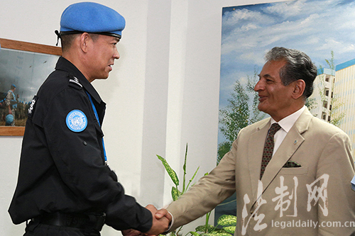 圖為聯(lián)利團(tuán)秘書長特別代表法里德·扎里夫接見防暴隊陳利華政委
