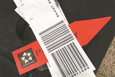 托運行李上的優(yōu)先標簽。記者 鄒菲 攝