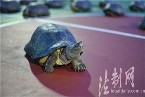 ????當(dāng)天上午10時許,該站執(zhí)勤官兵在檢查崗對一輛物流車進行例行檢查時,發(fā)現(xiàn)該車貨品氣味異常,且木條封裝的大件貨品全部置放在貨車尾部,有試圖阻止他人檢查車內(nèi)的嫌疑。執(zhí)勤官兵遂立即將車輛押至站內(nèi)進行詳細(xì)檢查,在車內(nèi)的兩個泡沫箱內(nèi)發(fā)現(xiàn)一批體型較大、背甲呈灰褐色的活體烏龜。由于司機無法提供養(yǎng)殖證明、運輸出入境手續(xù)、檢驗檢疫證明等合法手續(xù),該站遂將該批烏龜扣押。經(jīng)查,該批烏龜為亞洲巨龜,共有18只,最大的長48厘米,重12.4公斤,最小的長42厘米,重8.7公斤。