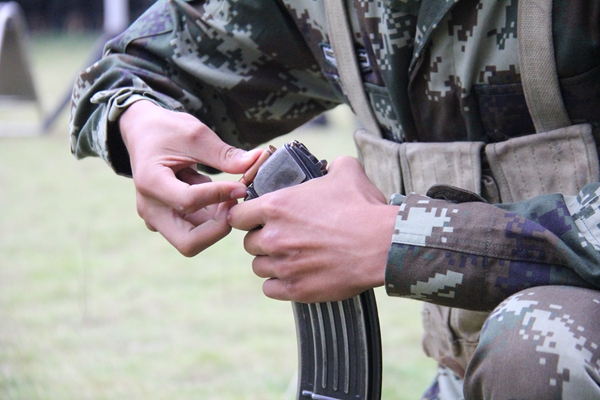 ????射擊場上,隨著指揮員一聲令下,新兵分批次領取實彈奔向射擊地線、臥姿裝彈、據槍瞄準,動作干脆利落。 “一號靶42環(huán),二號靶48環(huán)、三號靶……”報靶員通過對講機向記錄員如實報告。經最后成績統(tǒng)計,這個新訓團廣西籍新兵唐美飛在考核中取得了步槍精度射擊5發(fā)子彈49環(huán)的最好成績,他興奮說道:“我打了49環(huán),主要是我們班長教的好,我會加倍努力,不辜負班長對我們的嚴格要求?!保惥待垼?/p>