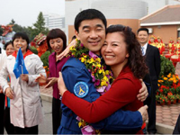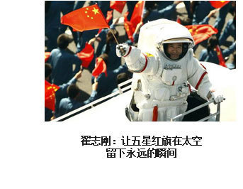 ??? 漫步太空、紅旗永駐。2008年9月27日16時43分,浩渺太空,敞懷相迎,我在戰(zhàn)友伯明、海鵬的協(xié)助和支持下,打開軌道艙艙門,邁出了中國人在茫茫太空中的第一步。在19分35秒的艙外活動中,我隨飛船一起飛過了9165公里,成為中國“飛得最高、走得最快”的人。然而,成功并不代表成熟,一切仍要從零開始。后續(xù)的空間站任務、登陸月球……路還很長,挑戰(zhàn)還很多,需要付出和努力的也還很多。對于我來說,沒有停歇的腳步,只有奮進的號角。