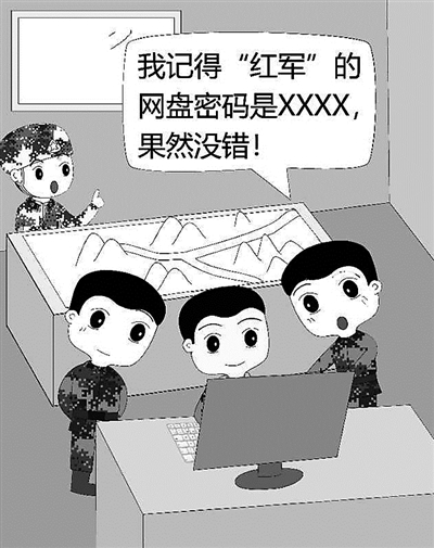 ????演練結(jié)束,這名文書坦言,他早就知道對方的網(wǎng)盤密碼。原來,此前,各營文書為了便于工作交流,有時會使用網(wǎng)盤傳輸或分享文件,一些網(wǎng)盤用戶名和密碼不少人都知道。這次演練前,“藍(lán)軍”營文書在用網(wǎng)盤調(diào)取查閱資料時,無意中在對方網(wǎng)盤中發(fā)現(xiàn)了秘密。