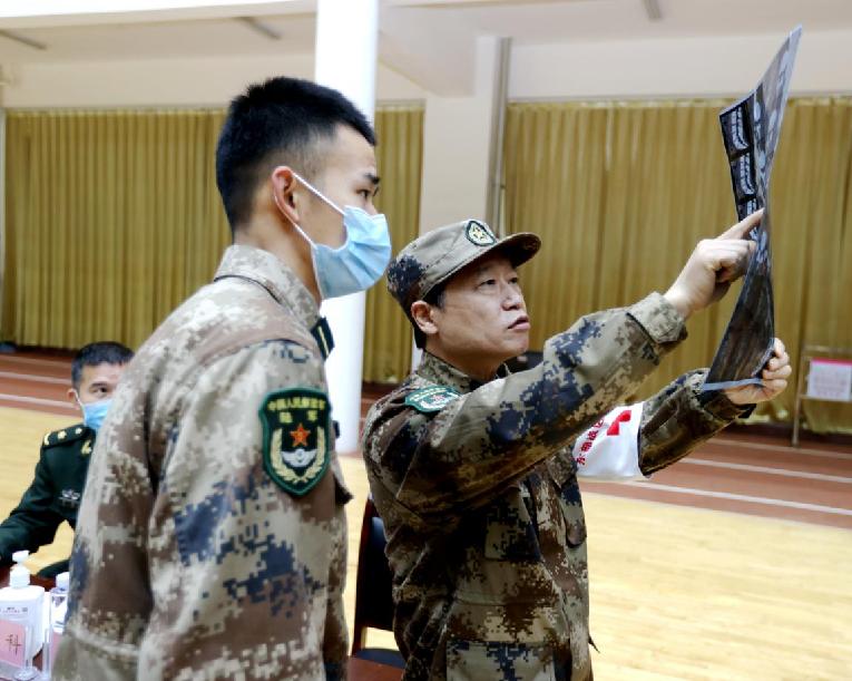 ????專家醫(yī)療隊在駐地營區(qū),為官兵進(jìn)行健康體檢。