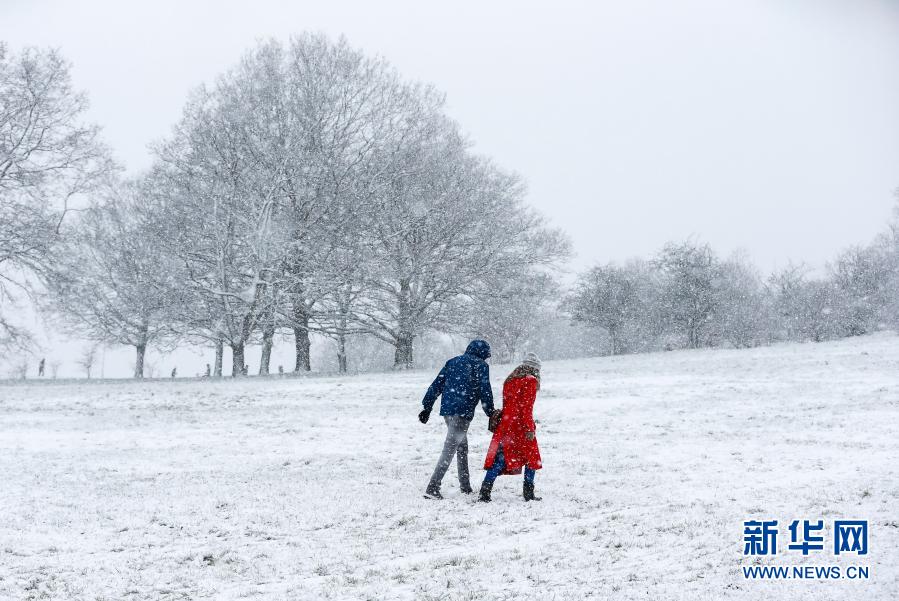 1月24日,人們?cè)谟?guó)倫敦的大雪中行走。新華社記者韓巖攝