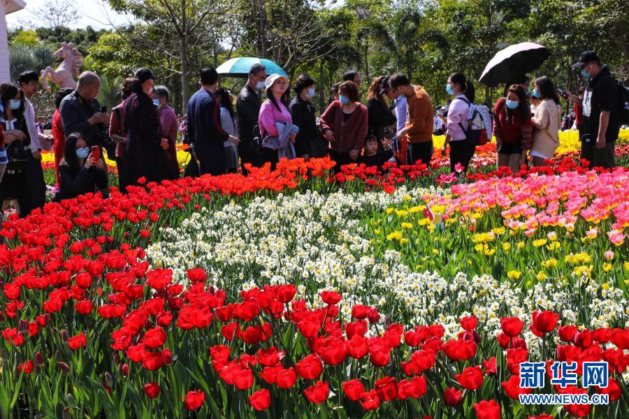 2月14日,游客在福建省廈門市園博苑賞花。新華社發(fā)(周道先 攝)