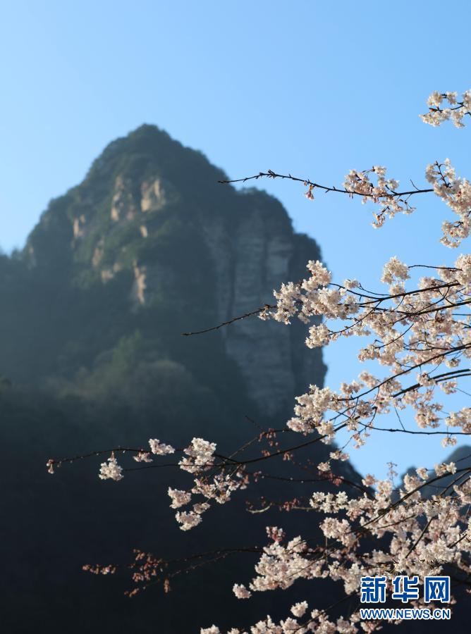 湖南張家界武陵源景區(qū)十里畫廊的櫻花競相綻放(2月14日攝)。新華社發(fā)(吳勇兵 攝)