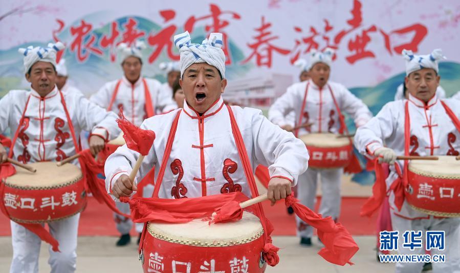 2月24日,民間藝人在陜西壺口瀑布景區(qū)為游客表演壺口斗鼓。