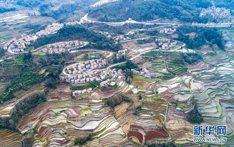 這是哈尼梯田景觀(2月24日攝,無人機(jī)照片)。