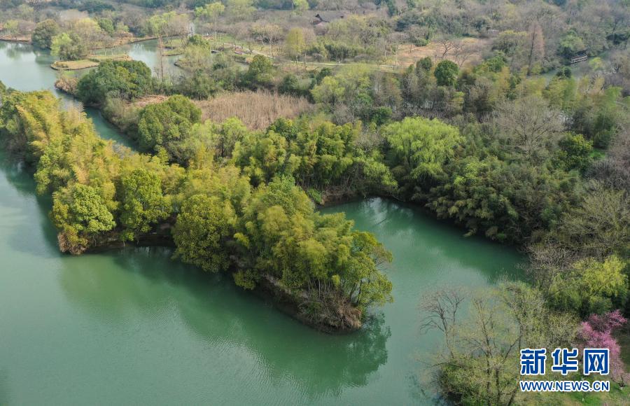 西溪濕地內(nèi)植被吐出新綠(3月2日攝,無(wú)人機(jī)照片)。