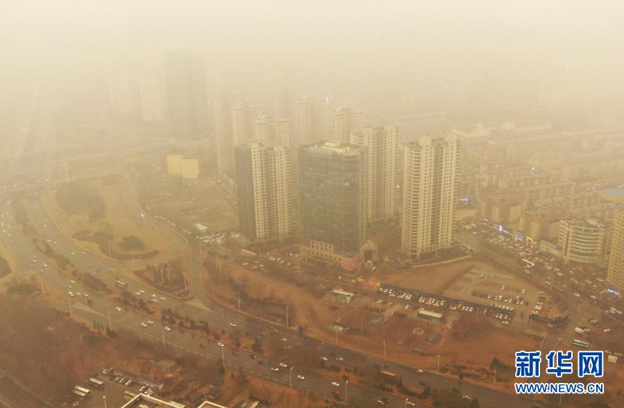 這是3月15日拍攝的遼寧省沈陽市渾南區(qū)一景(無人機照片)。當日,我國北方多地出現(xiàn)沙塵天氣。新華社記者 楊青 攝
