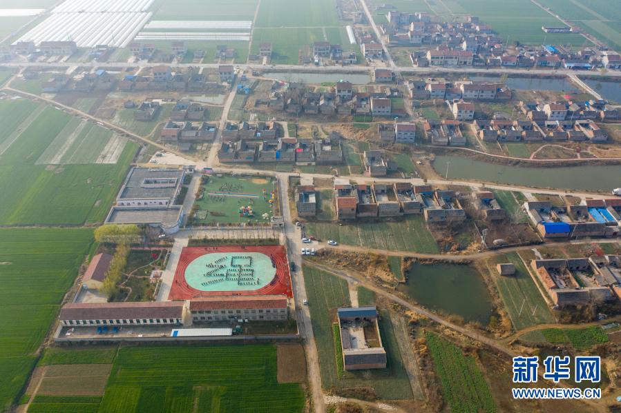 這是騎路小學(xué)所在的江蘇省徐州市睢寧縣慶安鎮(zhèn)騎路劉村(3月10日攝,無人機(jī)照片)。新華社記者 李博 攝